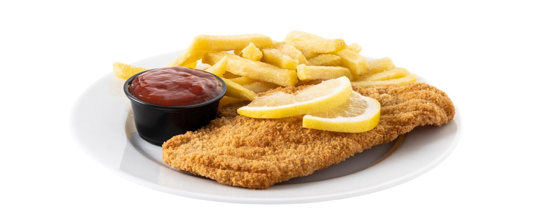 ● "Wiener Art" Schweinschnitzel (400gr), Pommes frites und Salat | 18,50 €.